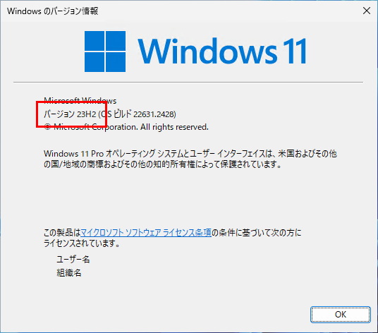 3. 下記画面が表示されます。Windows のバージョンを確認します。