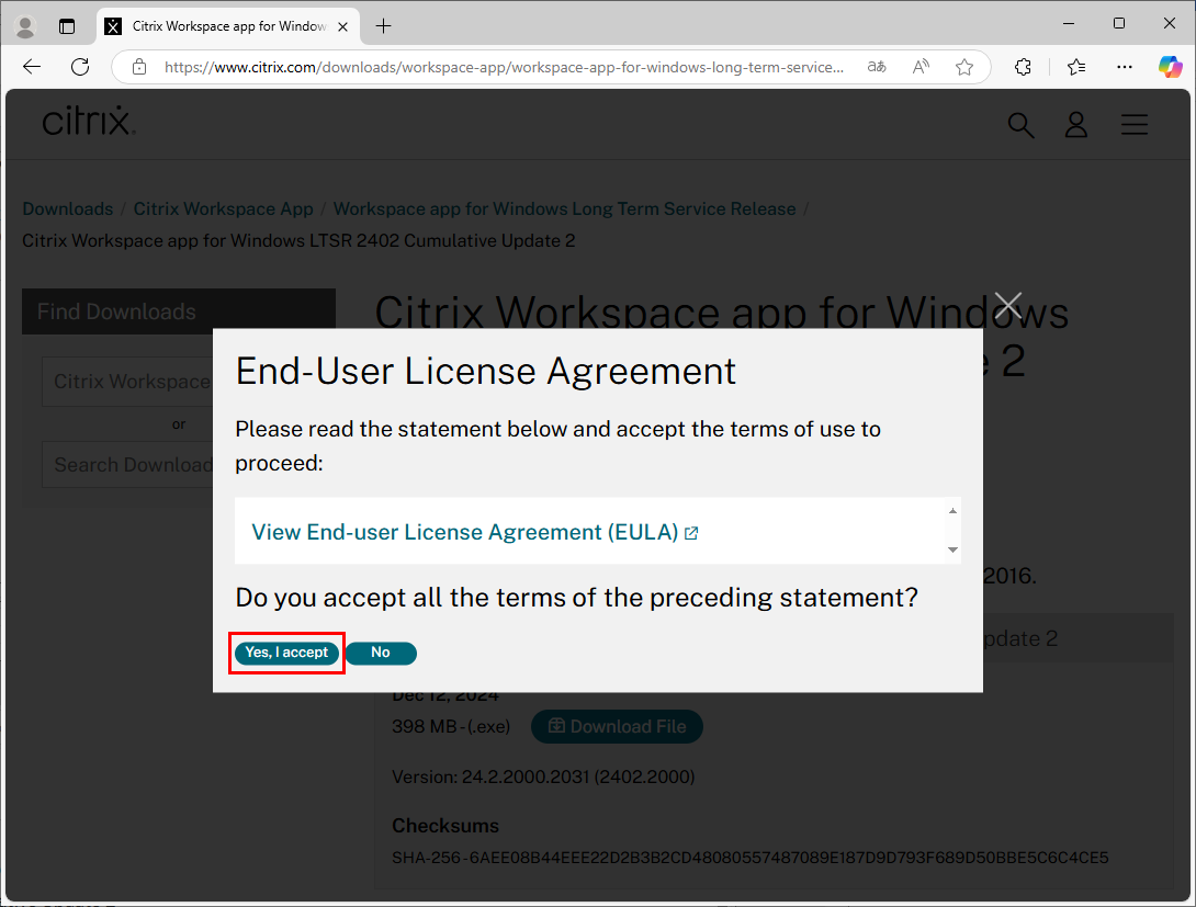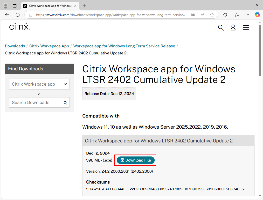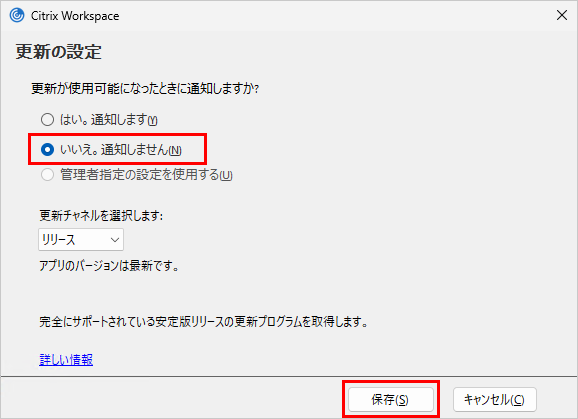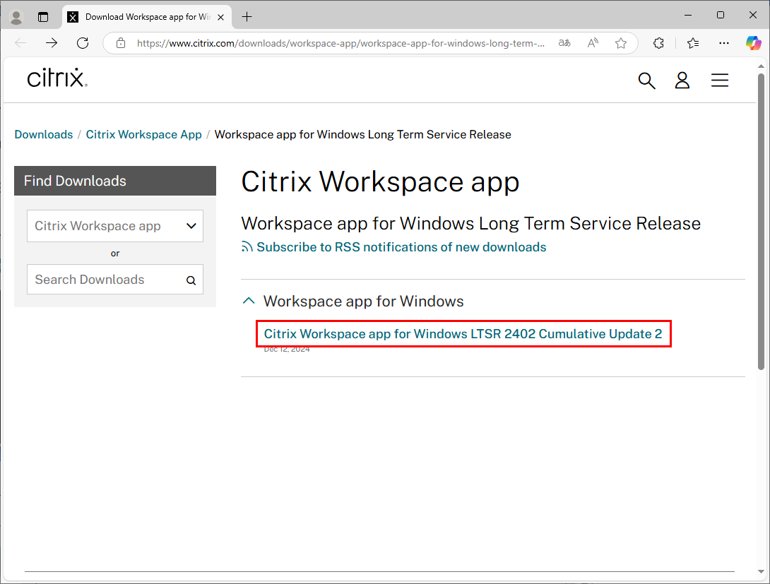 1. 以下のWEBサイトに接続します。 https://www.citrix.com/downloads/workspace-app/workspace-app-for-windows-long-term-service-release/ 2. 「Workspace app for Windows Long Term Service Release]の最新のバージョンをクリックします。