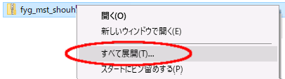 2. ダウンロードしたファイル(fyg_mst_shouhin_202510.zip)を右クリックして、「すべて展開」をクリックします。