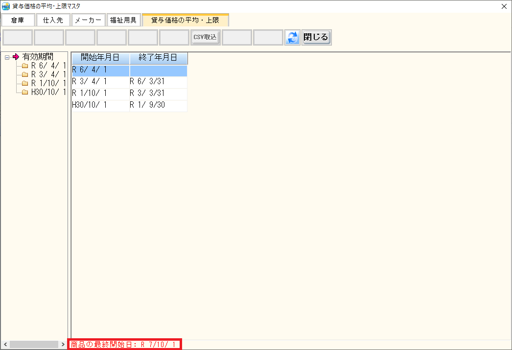 4. 商品の最終開始日が「R 7/10/ 1」に更新されます。